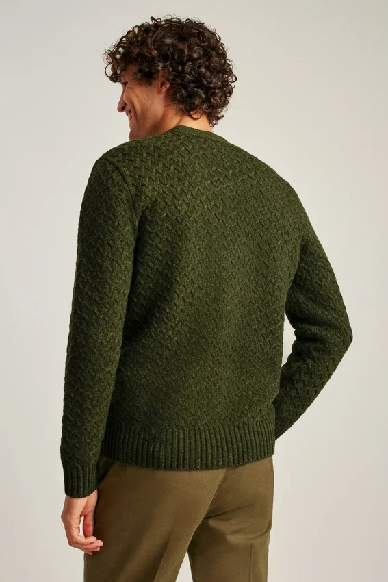 Fil confortable en mélange de laine avec texture torsadée sur toute la surface | Bordures côtelées | Fermeture à boutons