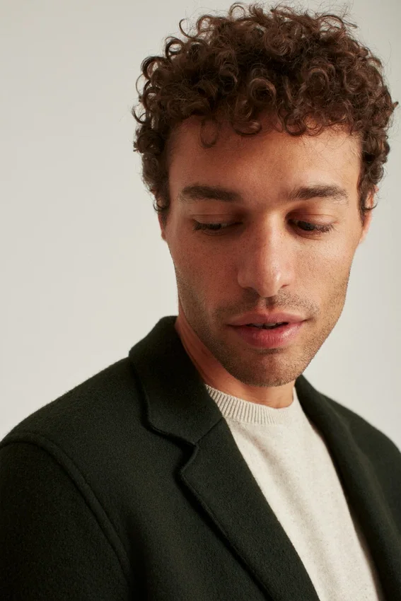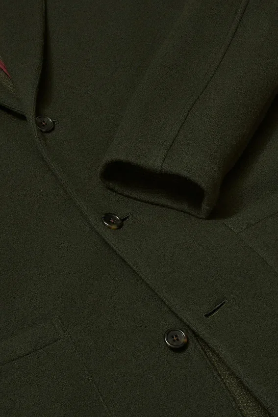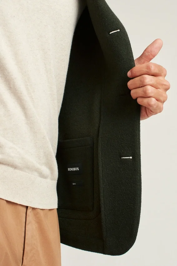 Simple boutonnage | Revers cranté | Poches plaquées à la taille | Intérieur Unconstructed avec bordures aux coutures | Poche plaquée intérieure | Coupe ajustée et souple | Boucle de suspension intérieure
