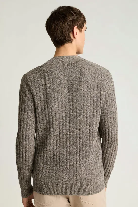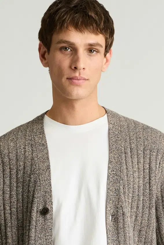 Mélange de lin italien et de coton | Fil retordu de deux couleurs différentes pour un effet contrasté | Côtes de pêcheur | Poches plaquées | Fermeture à boutons