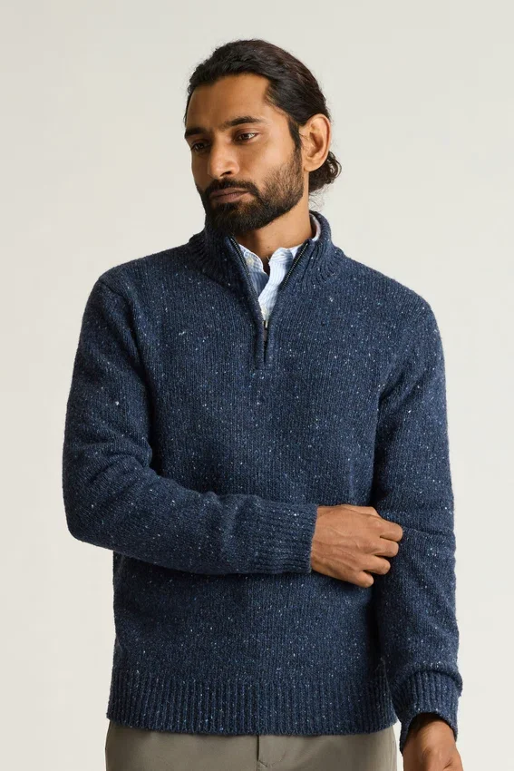 Un mélange plus chaud pour les superpositions par temps froid. Les mouchetures Donegal apportent une touche de personnalité supplémentaire.