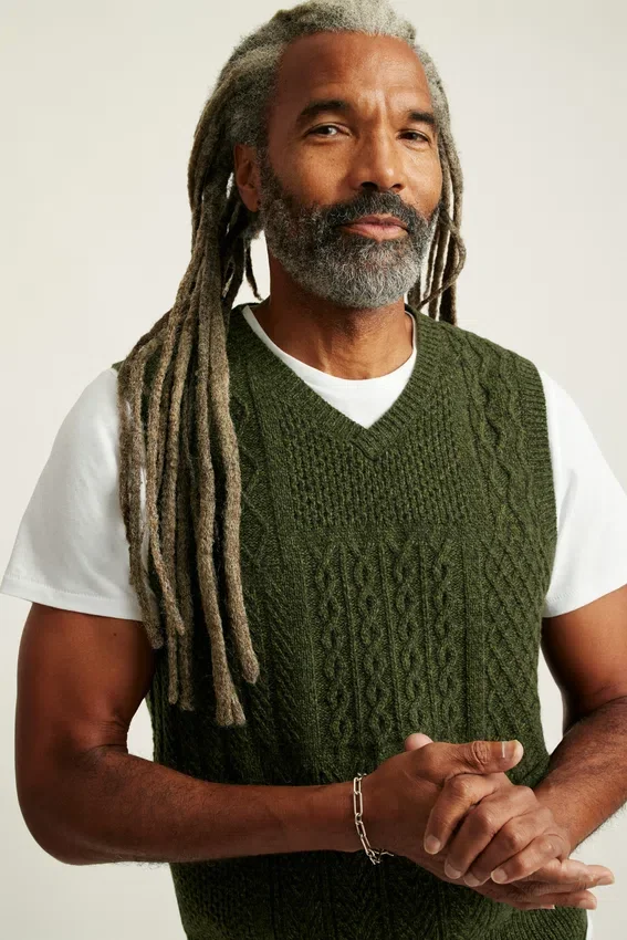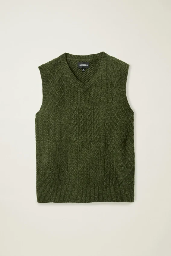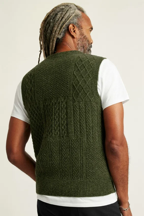 Gilet à col rond en laine torsadée