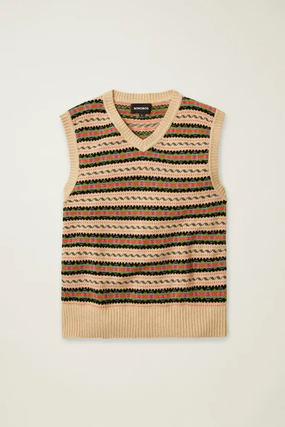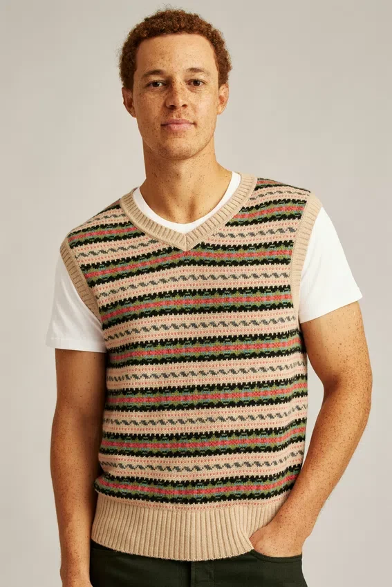 Découvrez le gilet Fair Isle de Bonobos ! Procurez-vous cette superbe pièce d’automne à superposer et profitez de ce gilet pour homme en laine mérinos polyvalente et chaude.
