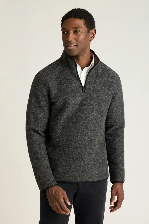 Polaire en laine italienne à fermeture éclair quart de longueur