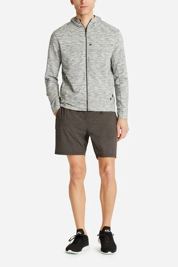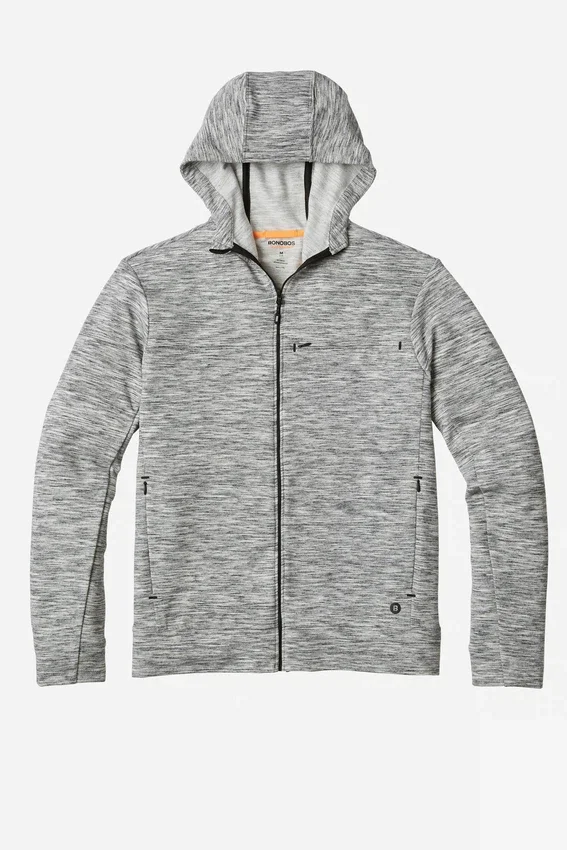 Pull à capuche et fermeture éclair intégrale avec renforts thermocollés | Poches latérales et poitrine zippées sécurisées | Poche poitrine dotée d’un œillet thermocollé intérieur pour faire passer le cordon des écouteurs