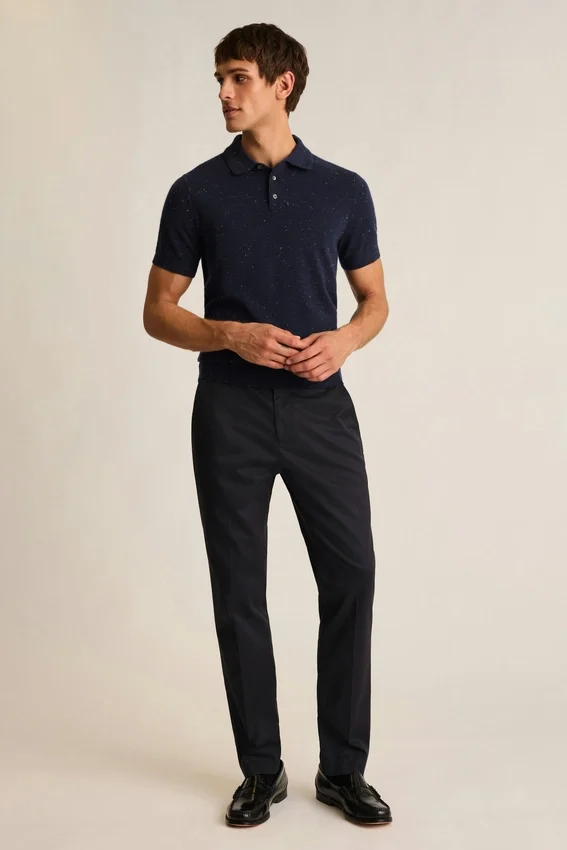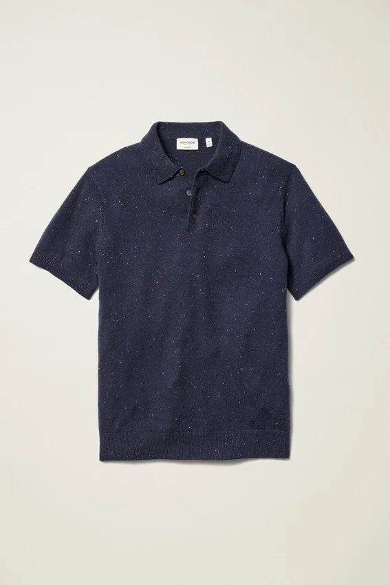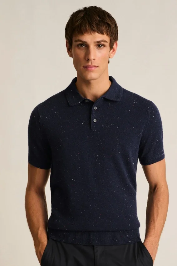 Un polo en maille au style rétro, best-seller de la marque, confectionné avec des fils de saison et des motifs originaux, prêt à s’imposer dans votre garde-robe.