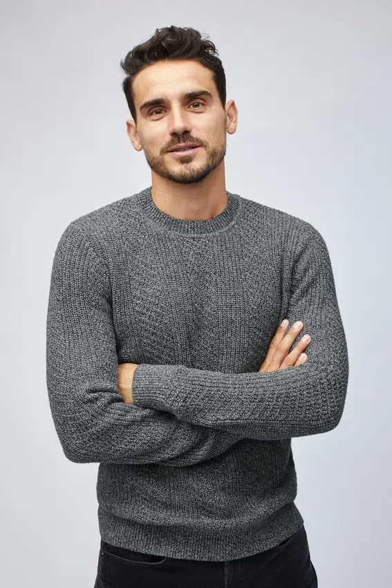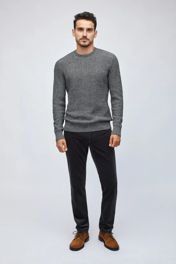 Fil de coton et cachemire doux et luxueux | Motif torsadé sophistiqué pour un look raffiné | Col, poignets et ourlet en côtes 1×1