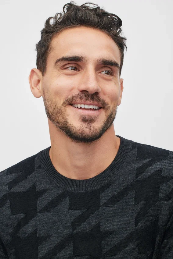 Le mannequin mesure 1,88 m, a un tour de poitrine de 102 cm et porte une taille M.