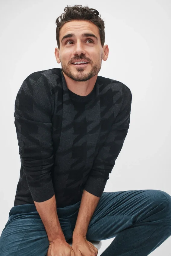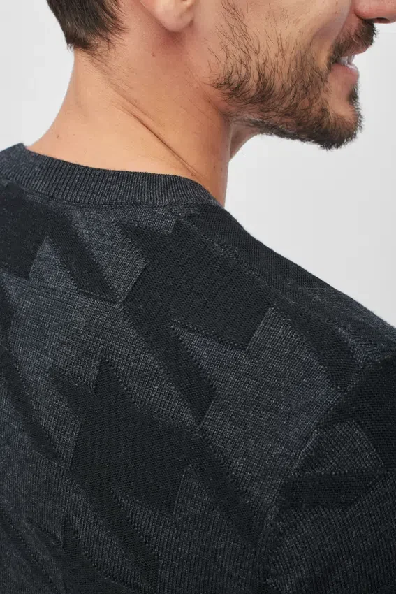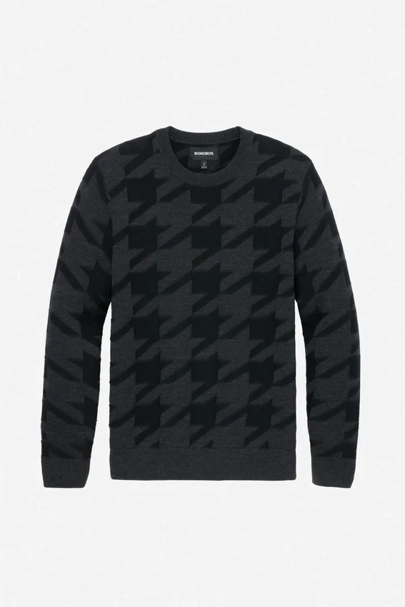 Pull à col rond en laine mérinos à motif pied-de-poule