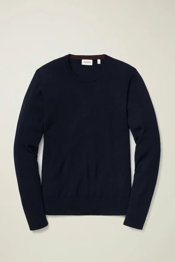 Laine mérinos légère | Corps en jersey | Col raffiné en côtes 1×1 | Poignets et ourlet plus hauts en côtes 1×1 | Bande contrastée cachée à l’intérieur de l’encolure