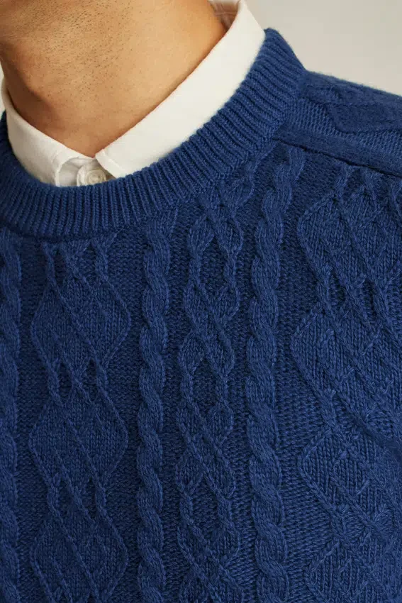 Pull à col rond en maille torsadée d’épaisseur moyenne
