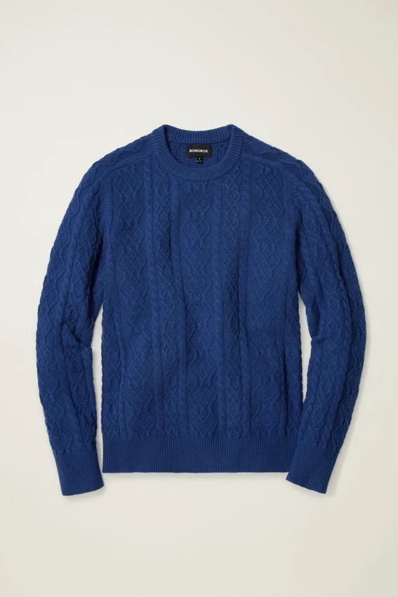 Découvrez le pull en maille torsadée à col rond d’épaisseur moyenne de Bonobos ! Ajoutez ce pull à col rond aux motifs torsadés complexes à votre garde-robe d’hiver.