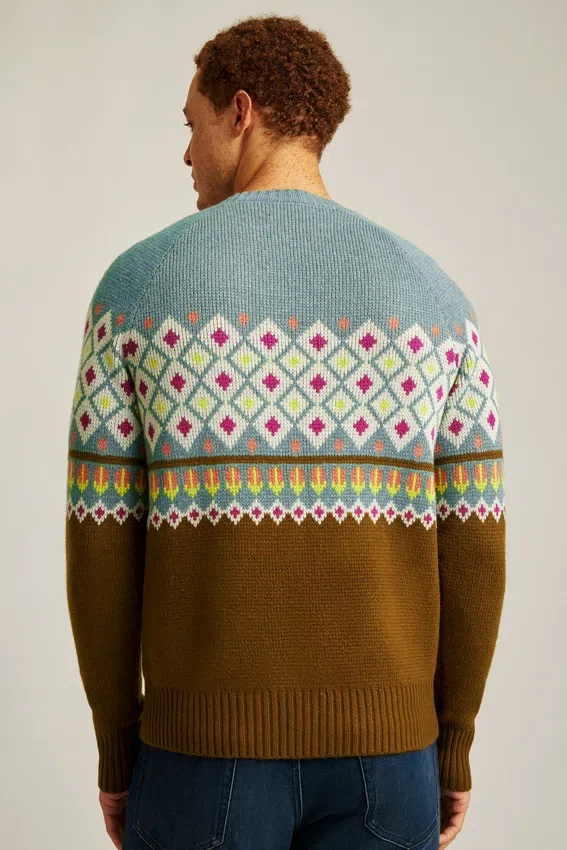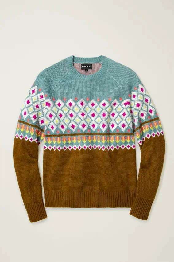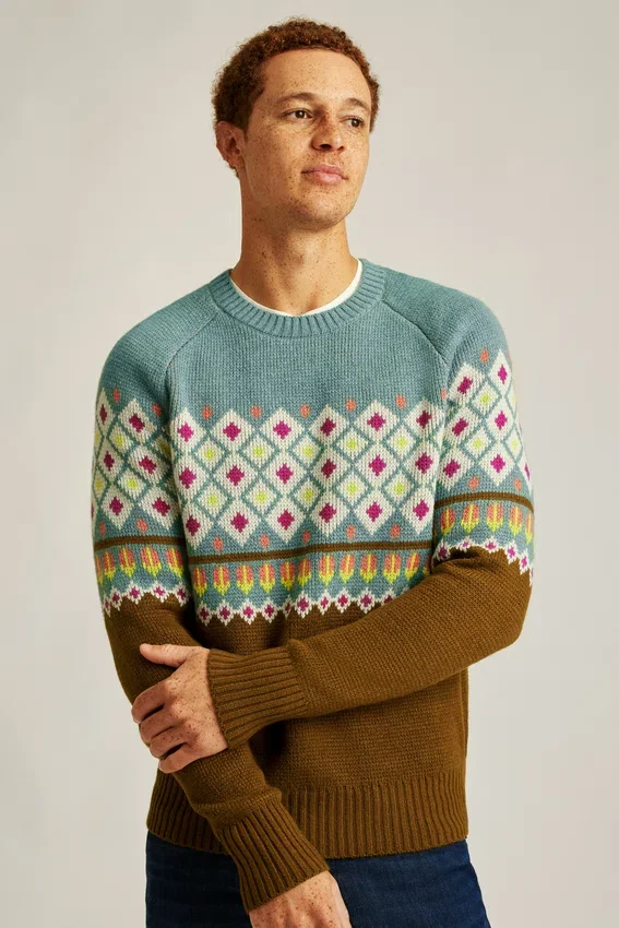 Découvrez notre pull Fair Isle à col rond, chaud et résistant, chez Bonobos ! Trouvez un pull Fair Isle élégant, confectionné en laine mérinos polyvalente pour plus de chaleur et de confort.