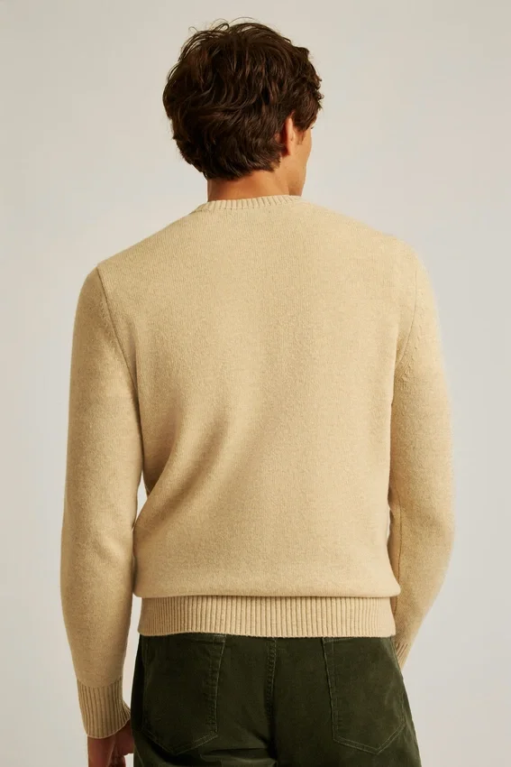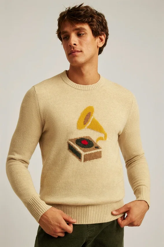 Fil confortable en mélange de laine avec illustration originale | Couleur contrastée à l’intérieur de l’encolure arrière