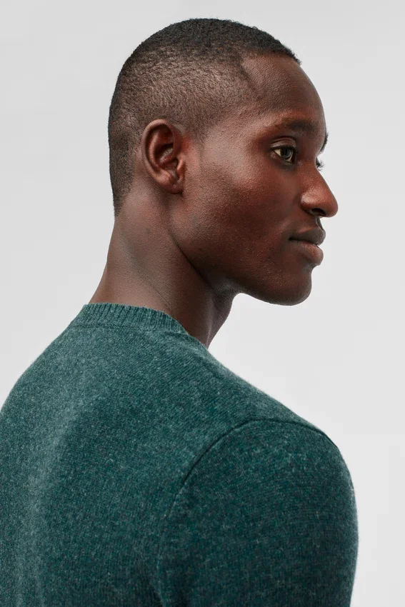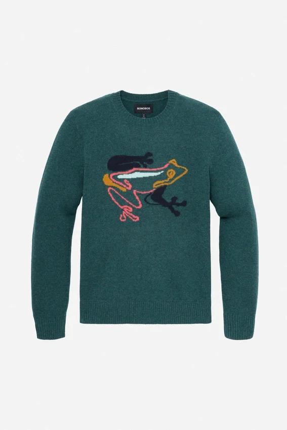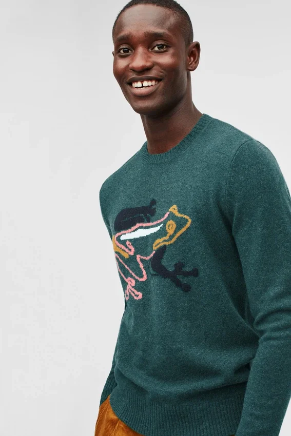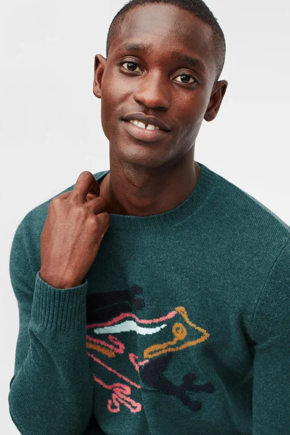 Pull en laine mérinos brossée ultra-douce et luxueuse, avec un motif original imprimé sur la poitrine