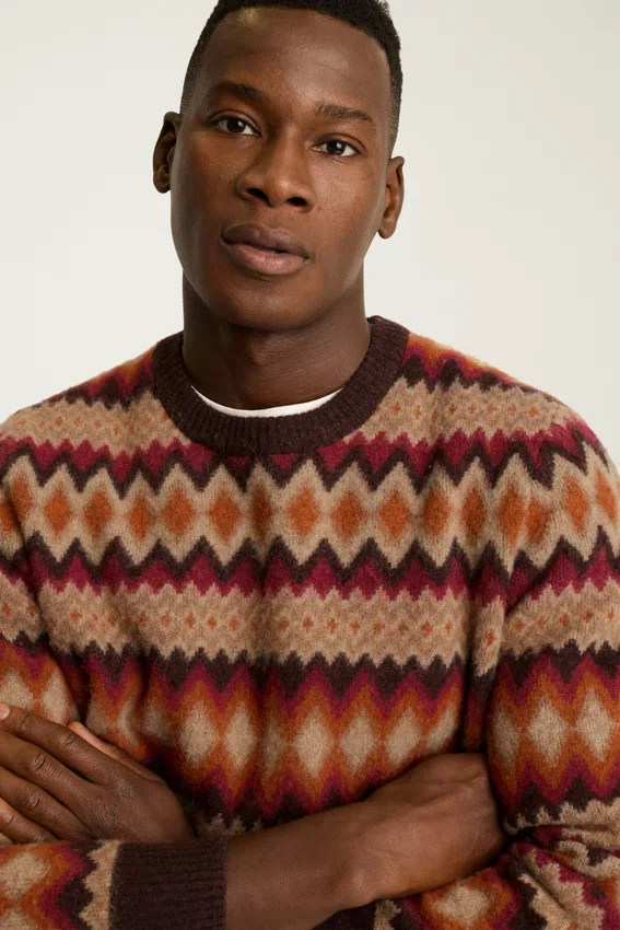 Pull à col rond motif Argyle Fair Isle