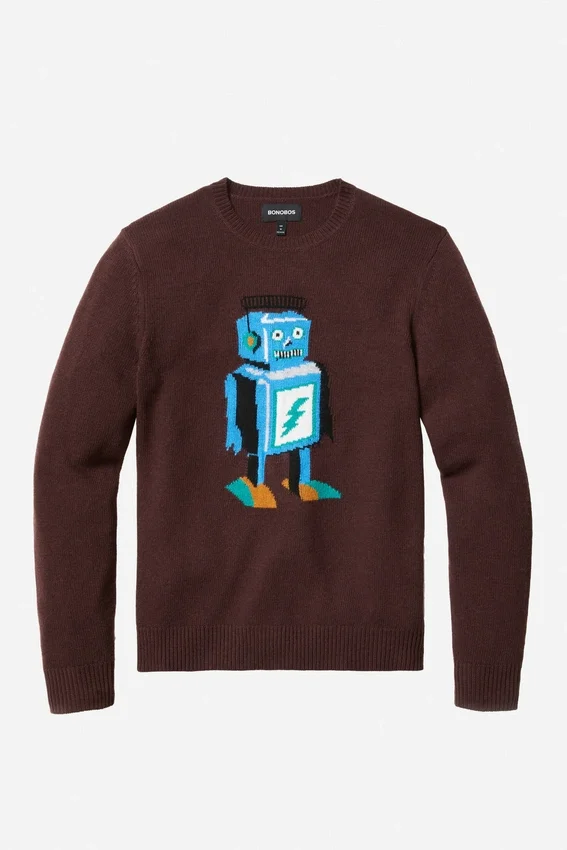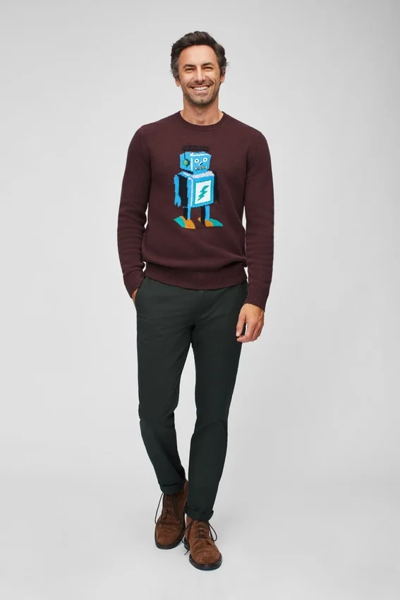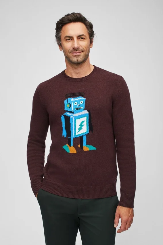 Fil mélangé de laine douce avec motif robot intégré sur la poitrine