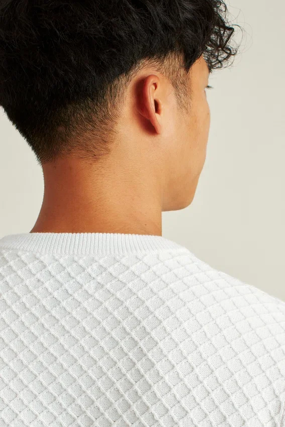 Mélange de coton rafraîchissant | Mailles texturées sur toute la surface | Bordures côtelées | Patte de boutonnage | Bande contrastée cachée à l’intérieur de la bordure du col