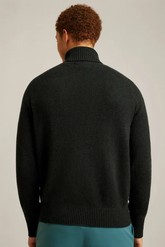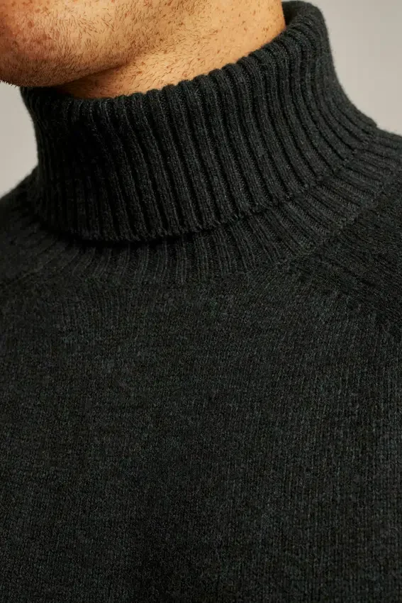 Mélange de laine multicolore chiné | Mailles jersey | Bordures en tricot côtelé | Épaules tombantes | Col roulé rabattu