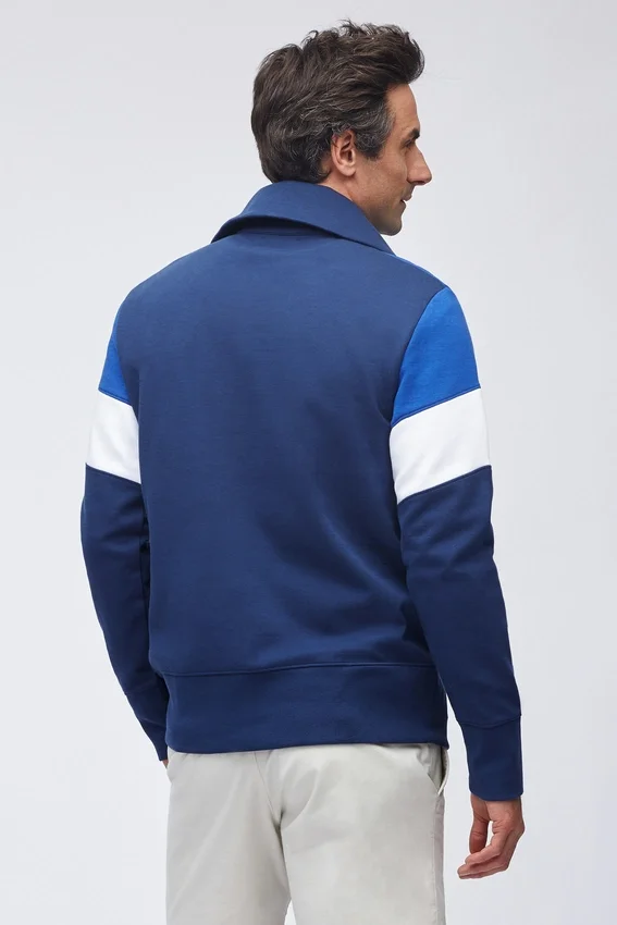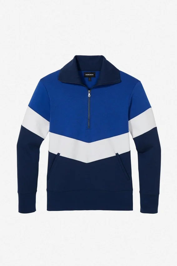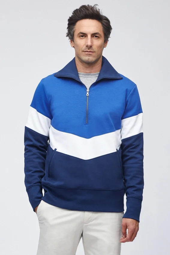 Ce pull à demi-zip color block est unique en son genre. Grands revers pouvant se fermer pour former un col roulé. Intérieur en molleton doux et motif en chevrons. Livraison gratuite !