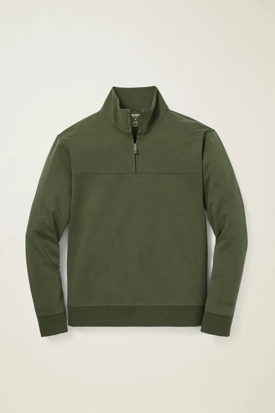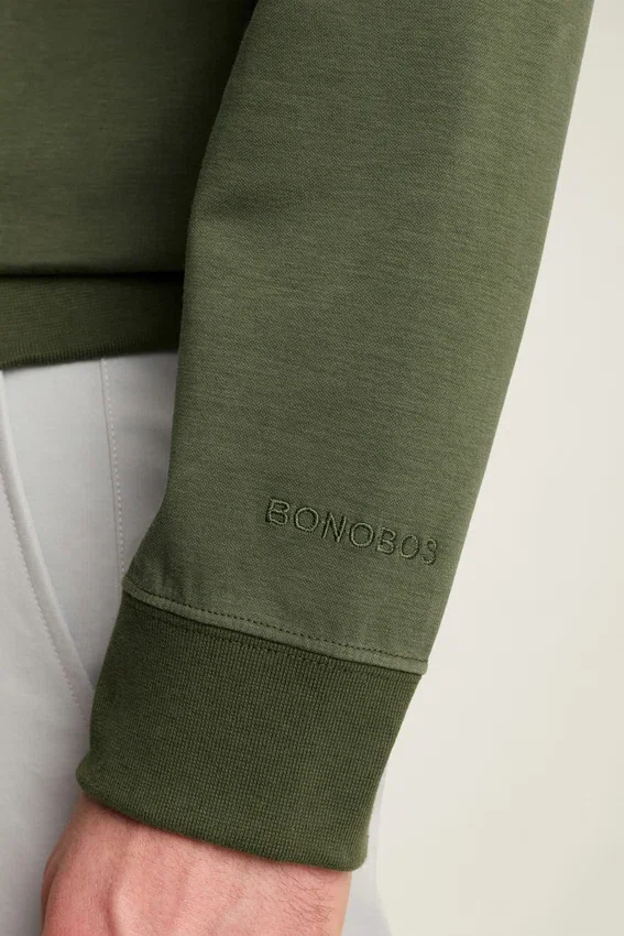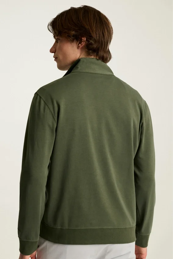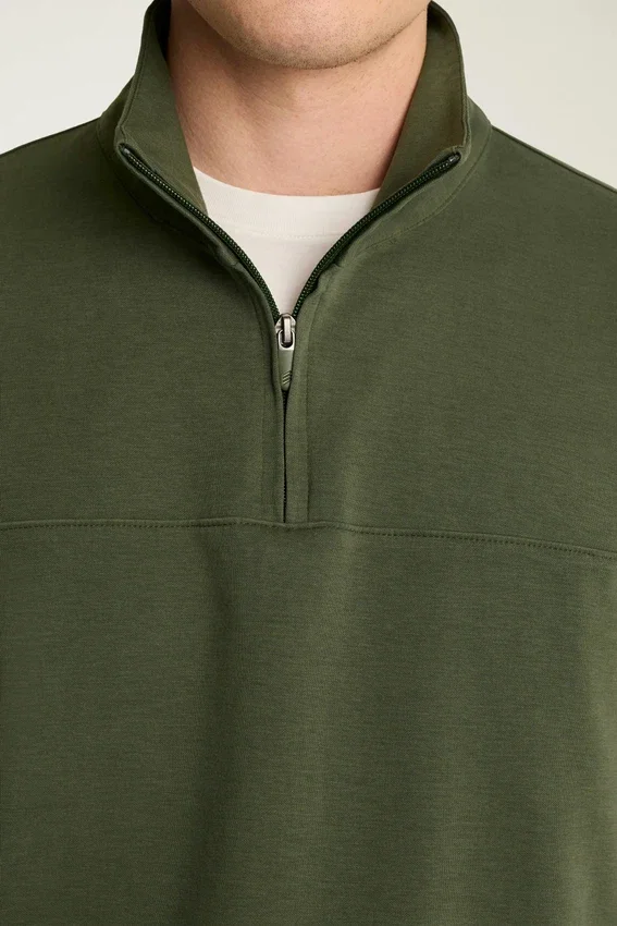 Tissu de poids moyen, doux et lisse | Évacue l’humidité | Col montant avec fermeture à demi-zip | Poignets et ourlet côtelés