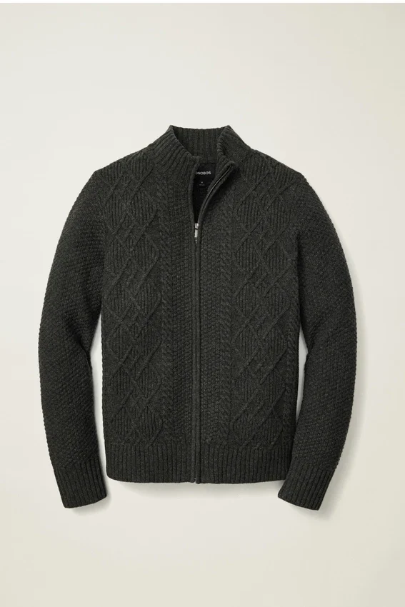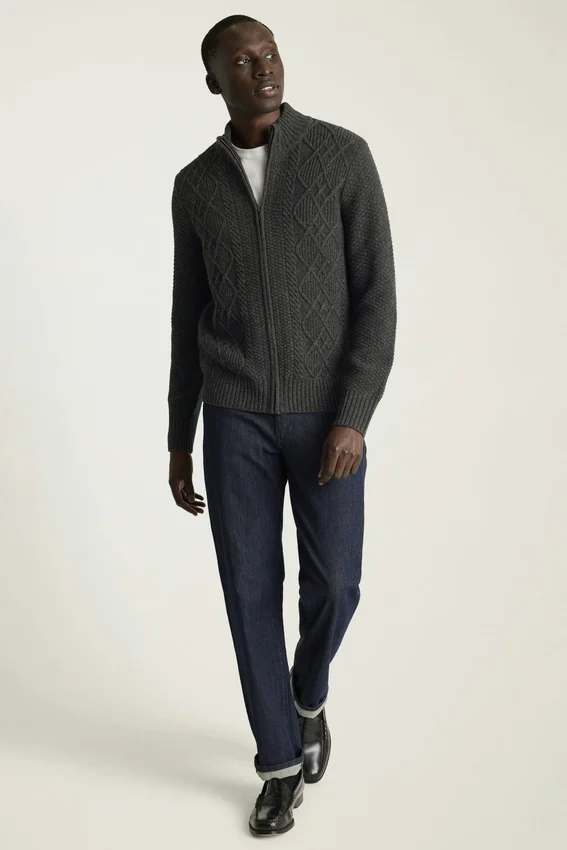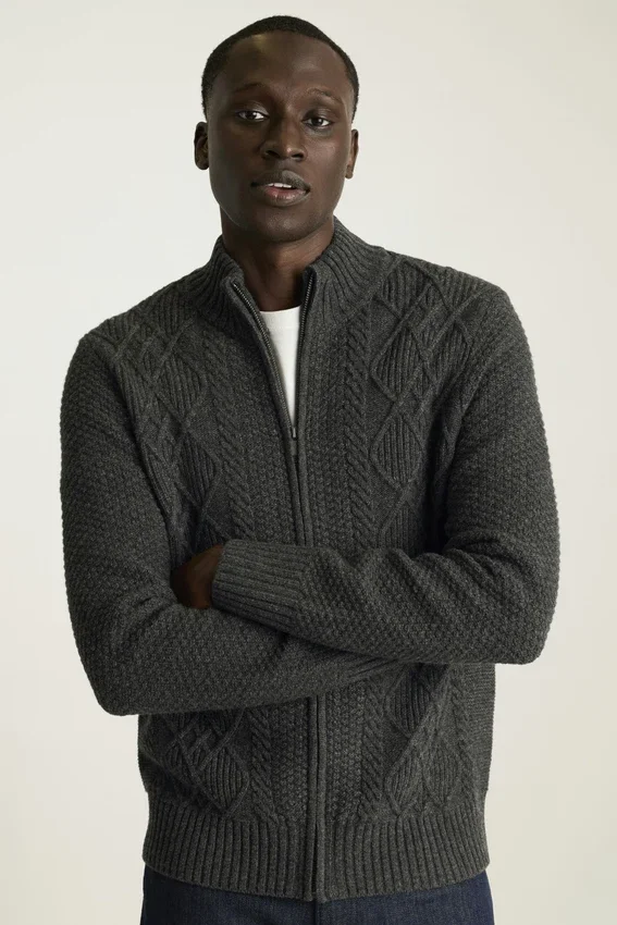 Rehaussez votre style avec notre pull zippé en maille torsadée épaisse, doté de détails classiques en maille torsadée. Parfait pour vous tenir chaud tout en affichant un look raffiné.