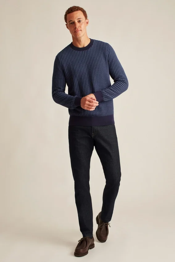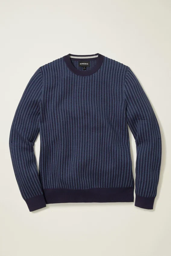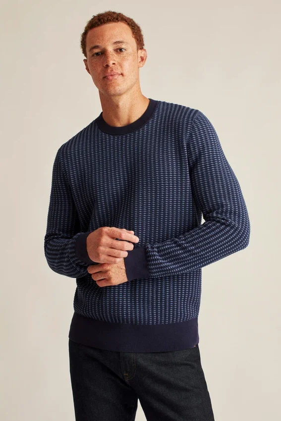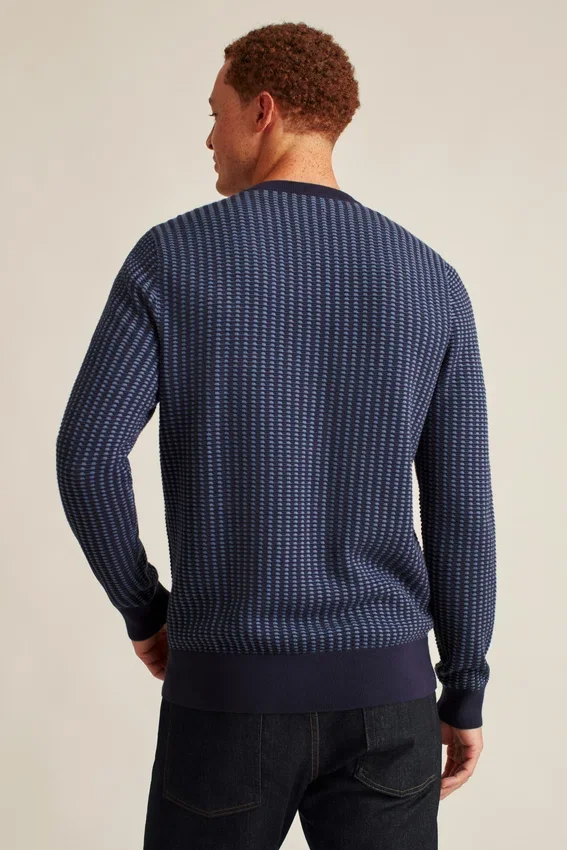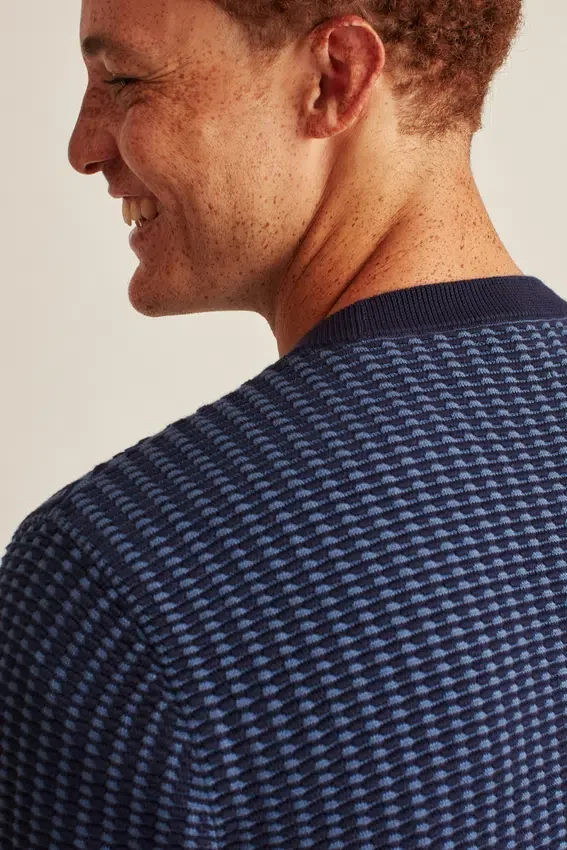 Fil de coton doux et respirant avec mailles texturées bicolores sur l’ensemble | Rayure contrastée cachée à l’intérieur de l’encolure