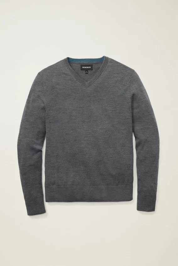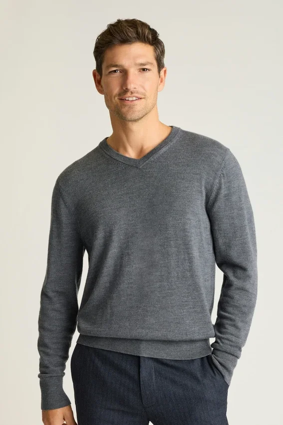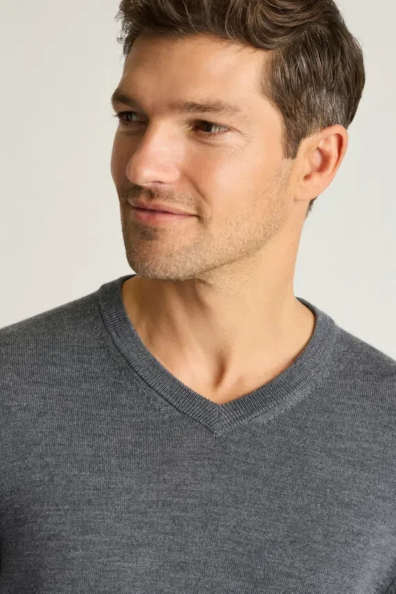 Pull en laine mérinos lavable à col en V