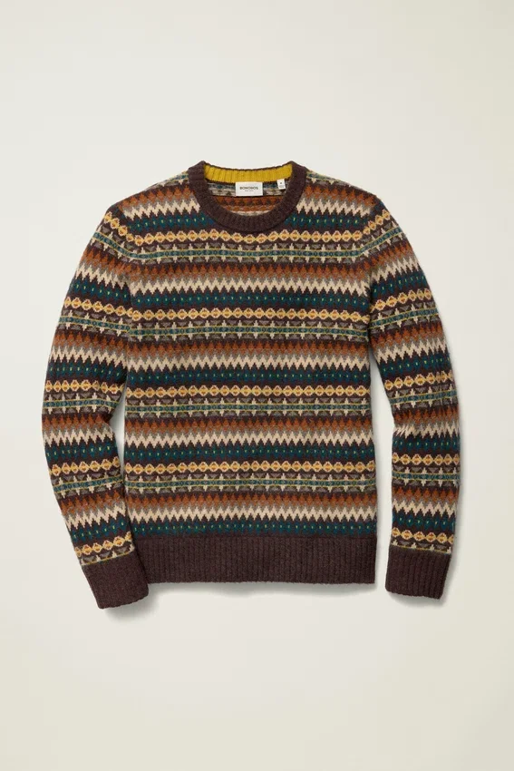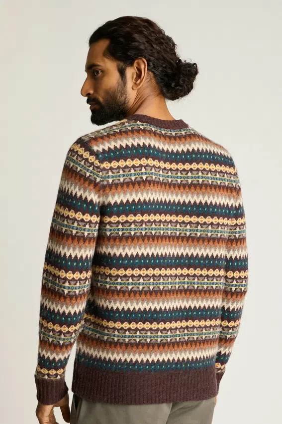Fil mélangé en laine mérinos, doux et chaud | Motif Fair Isle sur toute la surface | Brossé pour plus de texture et de douceur