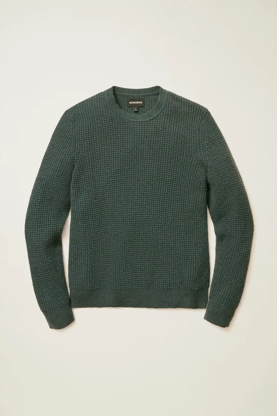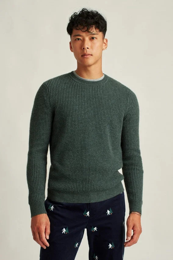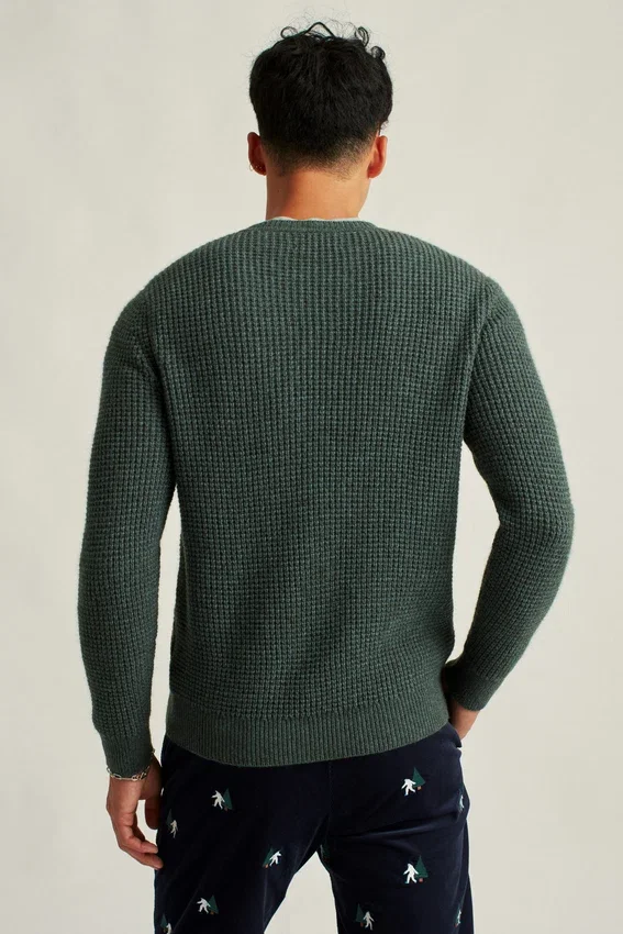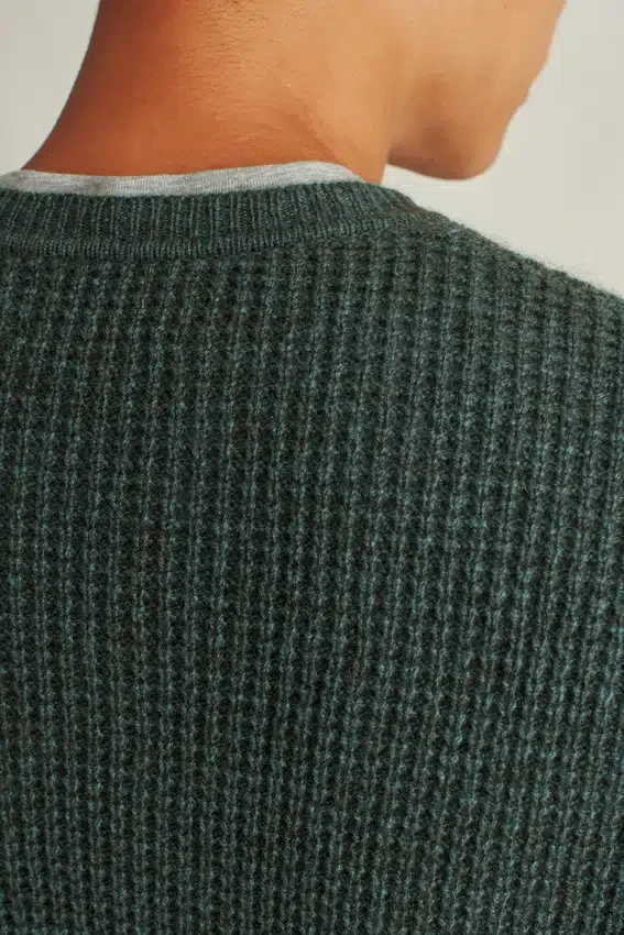 Mélange doux, chaud et luxueux de laine de yack et de laine mérinos. Poids moyen. Corps en maille gaufrée thermique. Bordures côtelées
