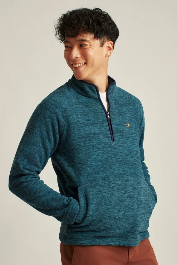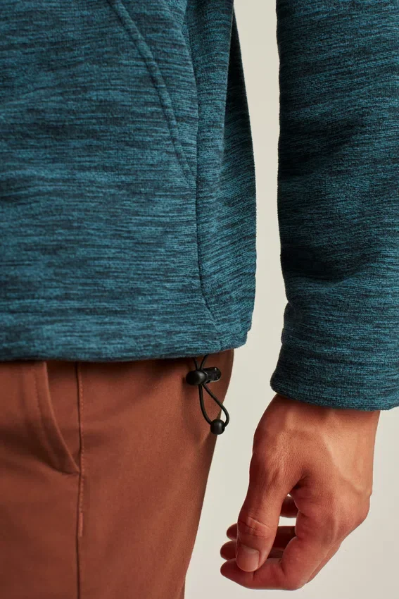 Polaire épaisse et douillette avec effet jaspa | Fermeture éclair au col cheminée | Bordures contrastées | Poche kangourou | Cordon de serrage élastique à l’ourlet | Motif original brodé sur la poitrine