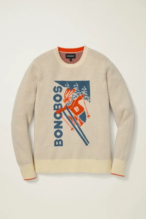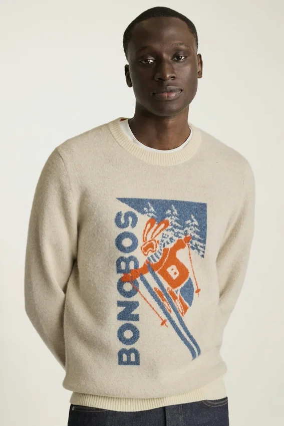 Enveloppez-vous de confort dans notre pull Ski Bunny en mérinos extra-fin, inspiré des affiches rétro. Parfait pour un look après-ski, même si vous ne dévalez pas les pistes.