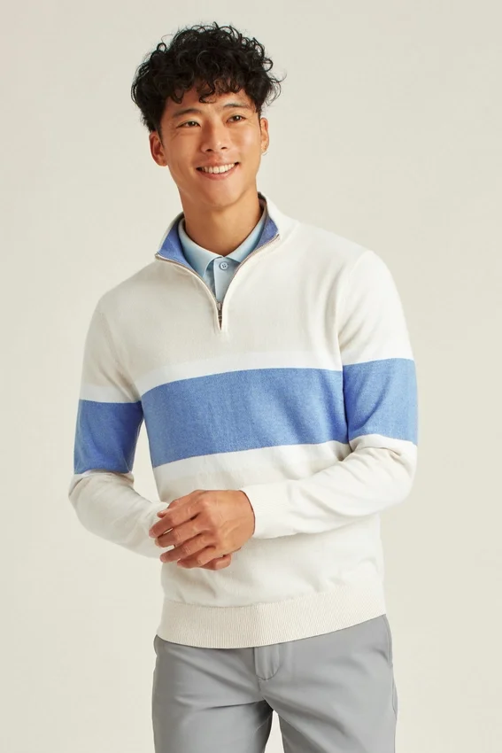 Pull à demi-zip | Idéal à superposer sur un polo | Tissu en maille | Fermeture à glissière sur le devant