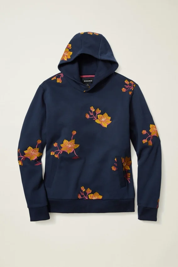 Polaire ultra-douce avec motif floral original brodé sur toute la surface