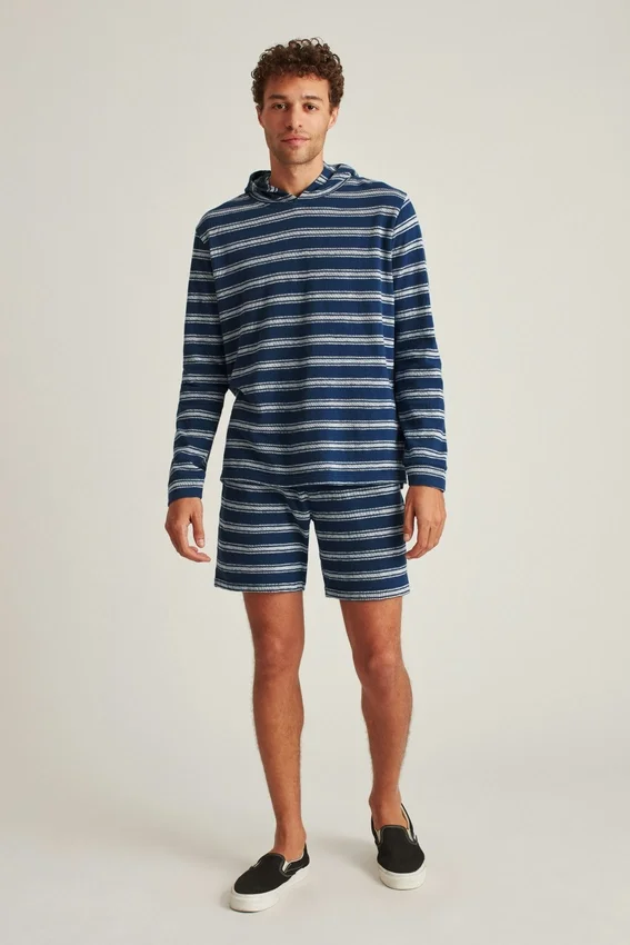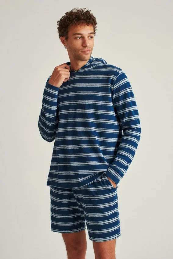 Sweat à capuche léger en molleton français rayé