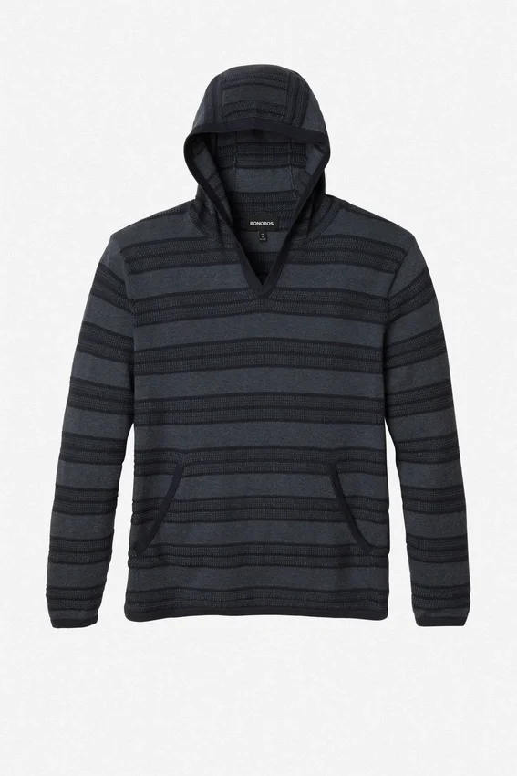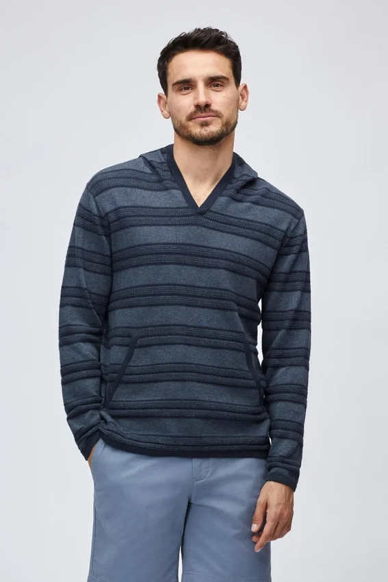 Fil de coton léger et doux | Corps à mailles mixtes avec texture | Coupe décontractée et ample | Finitions tubulaires épurées aux poignets, à la capuche et à l’ourlet | Poche kangourou appliquée