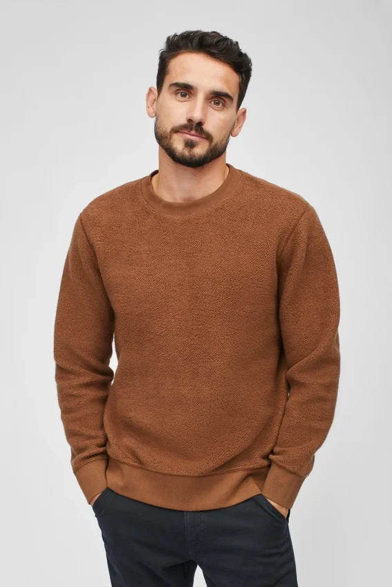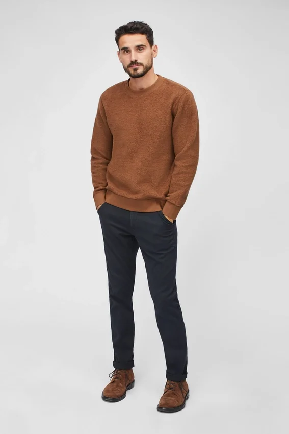 Tissu French Terry brossé, doux et texturé | Coutures recouvertes | Bordures en côtes 1×1