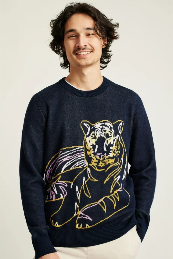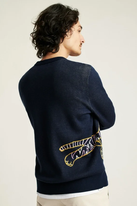 Fil de coton doux et respirant avec un motif original qui s’étend du devant au dos.