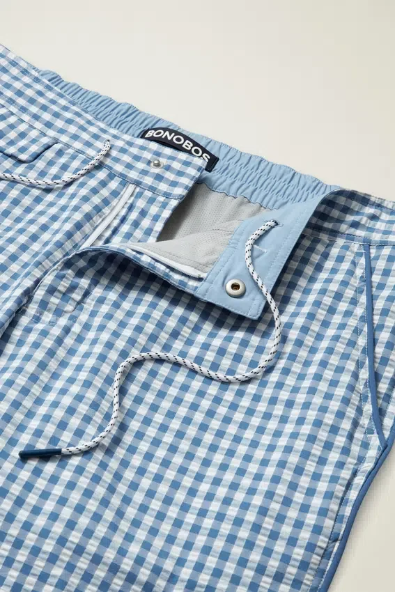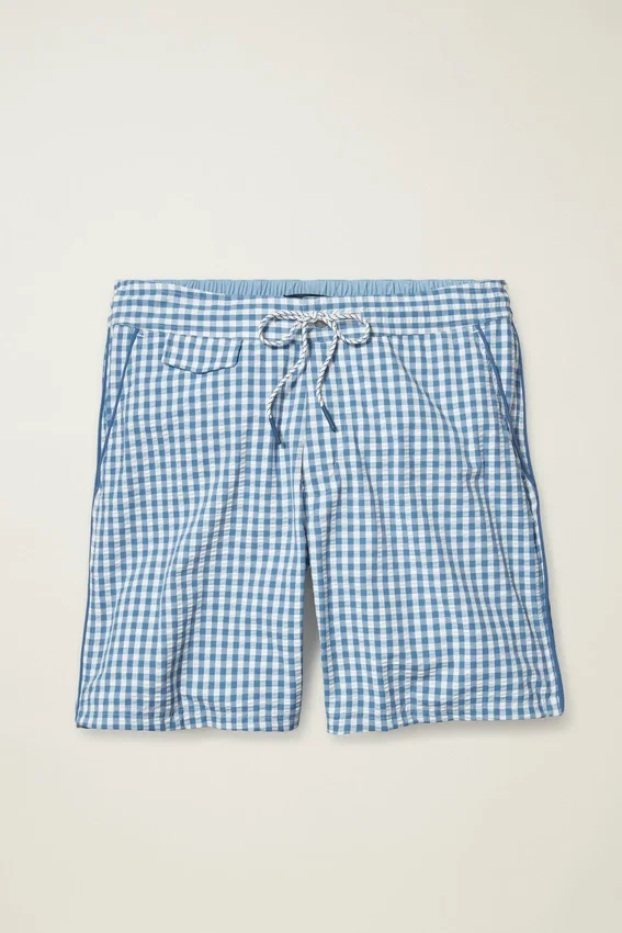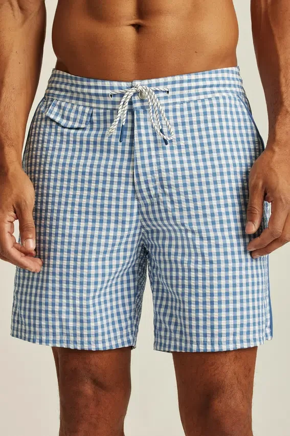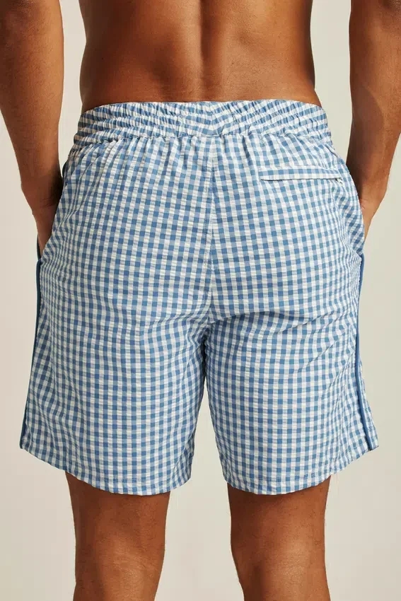 Short de bain en seersucker alliant style et fonctionnalité, idéal pour la plage et la promenade.