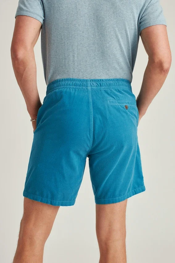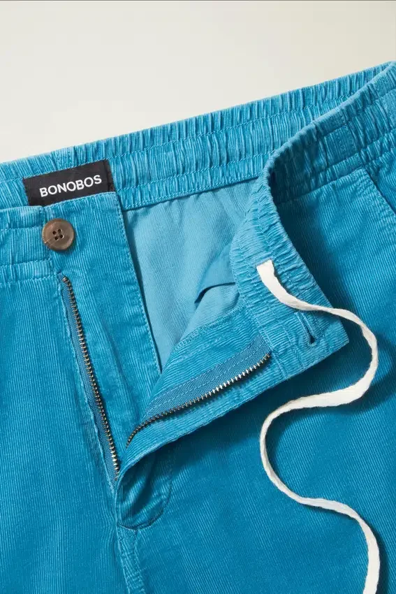 Taille élastiquée avec cordon de serrage intérieur | Micro-corduroy doux au toucher | Braguette zippée avec fermeture à bouton | Fermeture à bouton sur la poche arrière