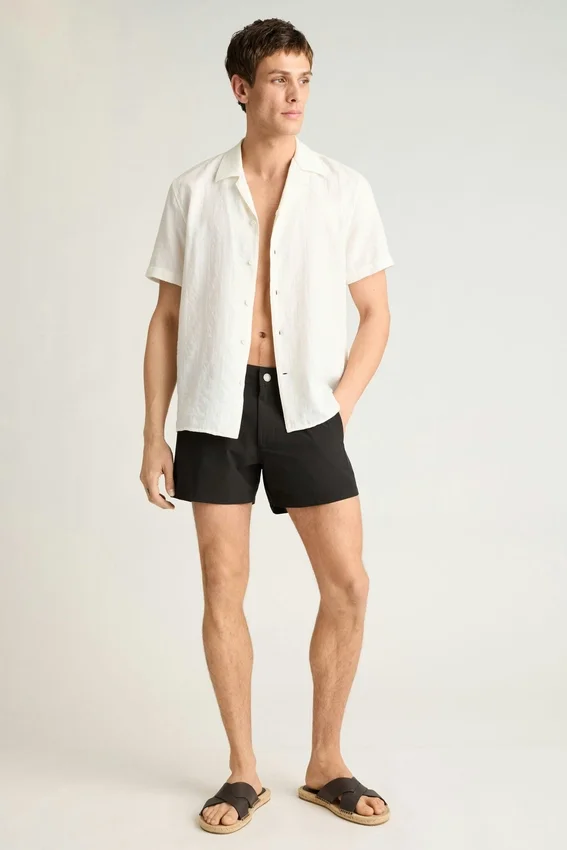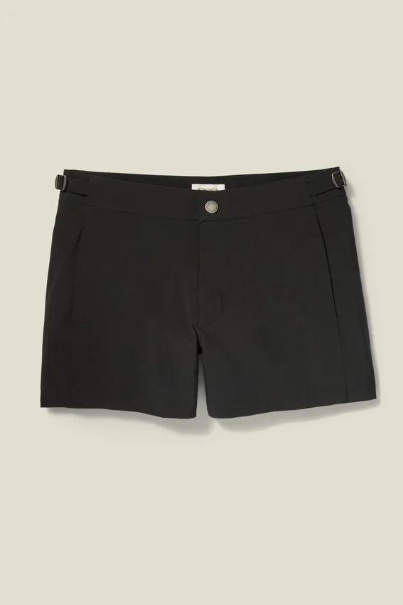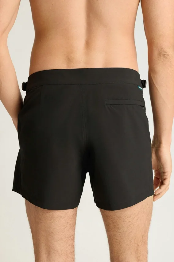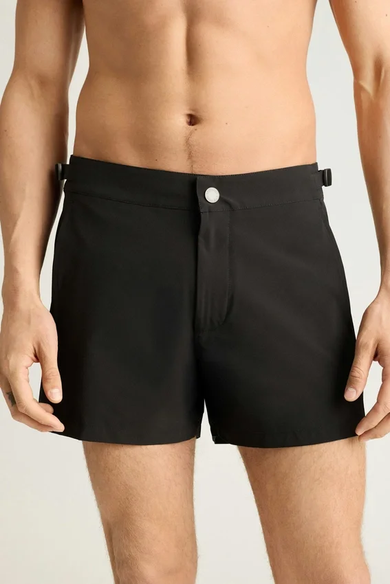 Un short de bain raffiné, idéal pour la plage ou la promenade, doté de pattes latérales réglables pour un ajustement sur mesure.