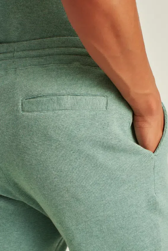 Tissu gaufré texturé | Taille élastiquée | Deux poches avant, une poche arrière passepoilée