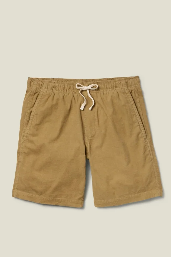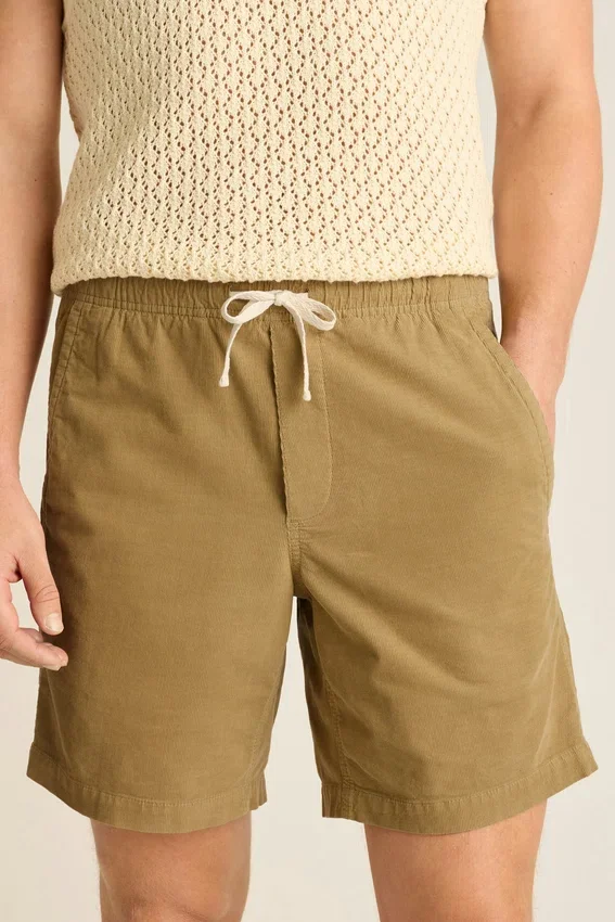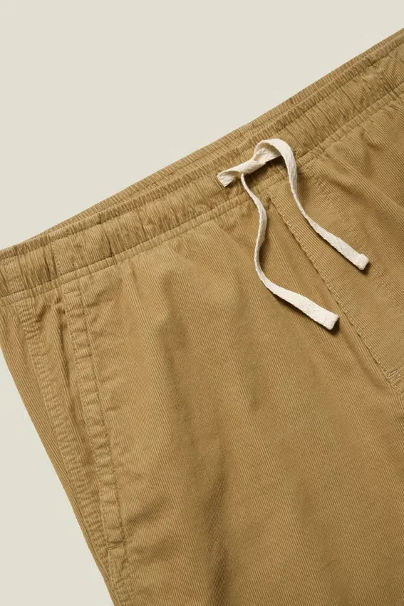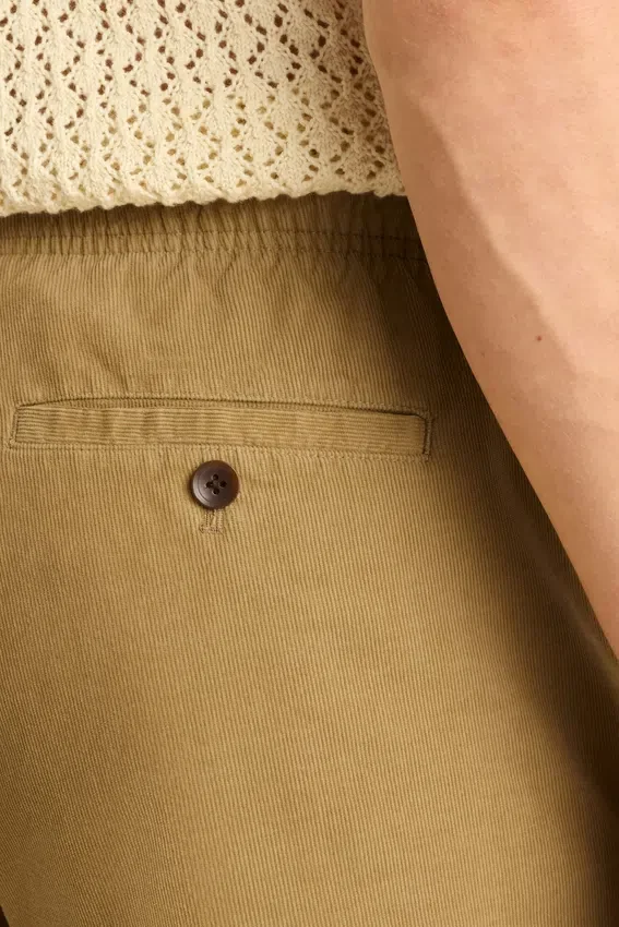 Ceinture élastiquée avec cordon de serrage extérieur | Poches imprimées | Velours côtelé teint en pièce pour un look délavé par le soleil