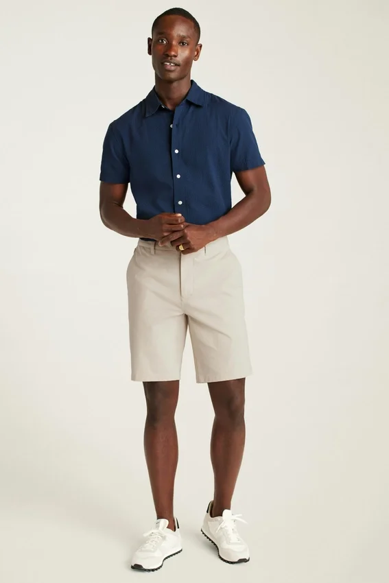Le même tissu infroissable et extensible dans les 4 sens que notre pantalon chino n° 1, décliné en un short chino pour homme parfait. Découvrez nos shorts chino légers pour homme.