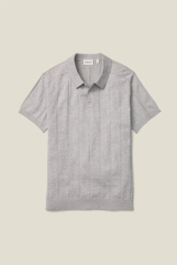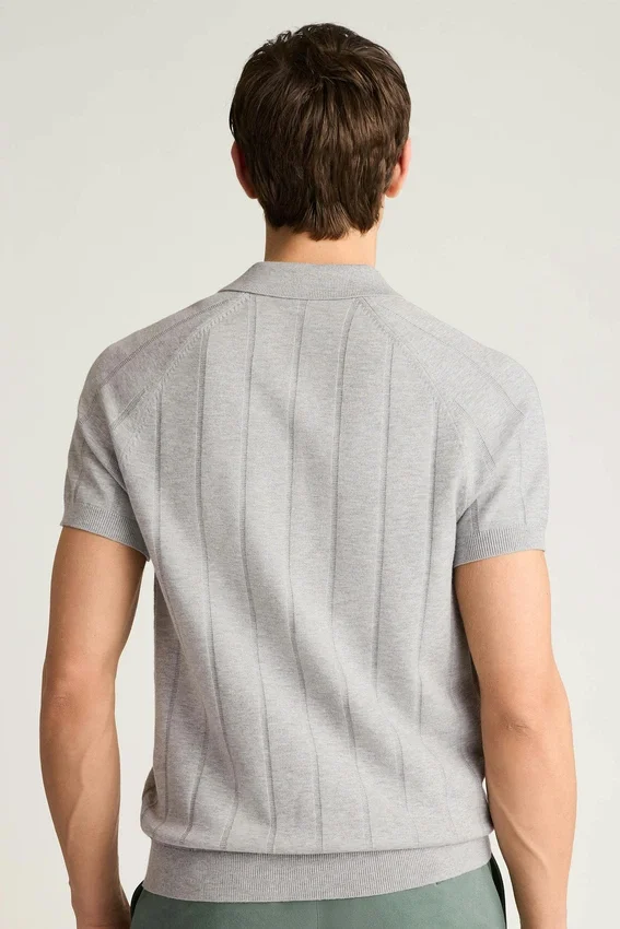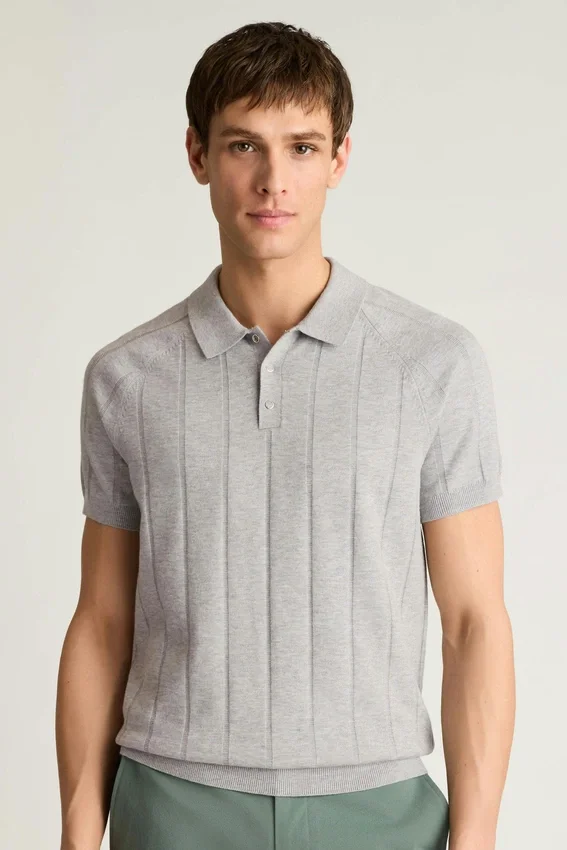 Un polo en maille au style rétro, best-seller de la marque, confectionné avec des fils de saison et des motifs originaux, prêt à s’imposer dans votre garde-robe.