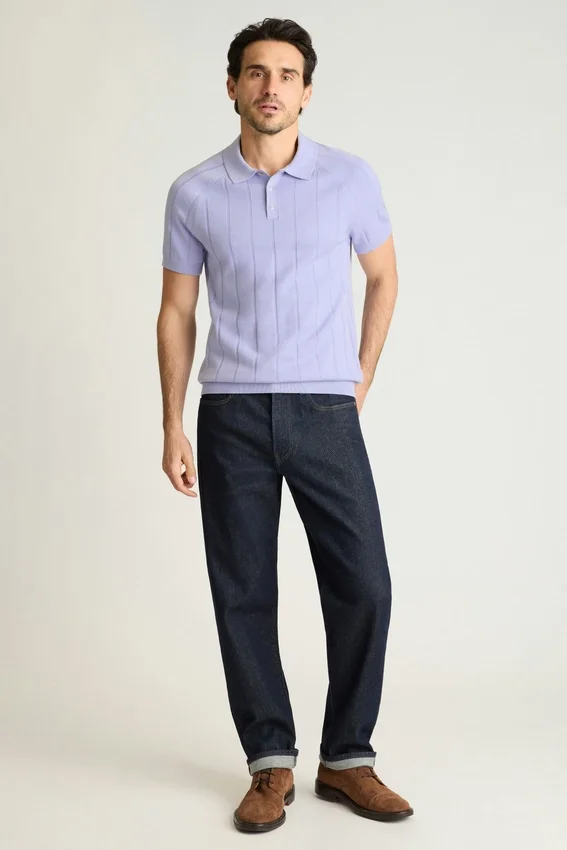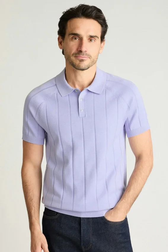 Un polo en maille au style rétro, best-seller de la marque, confectionné avec des fils de saison et des motifs originaux, prêt à s’imposer dans votre garde-robe.
