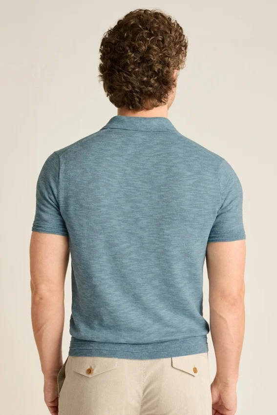 Fil de coton et lin doux à texture flammée | Jersey | Fermeture à boutons | Manches courtes | Léger