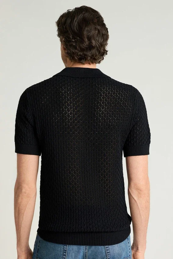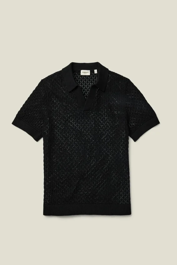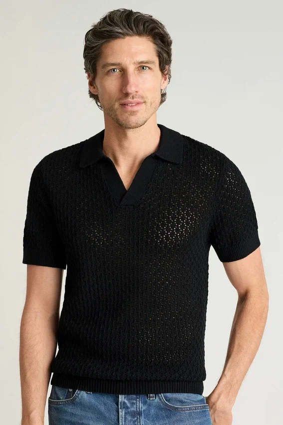 Un polo en maille au style rétro, best-seller de la marque, confectionné avec des fils de saison et des motifs originaux, prêt à s’imposer dans votre garde-robe.
