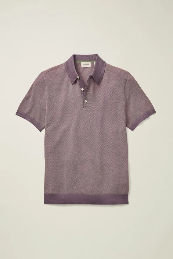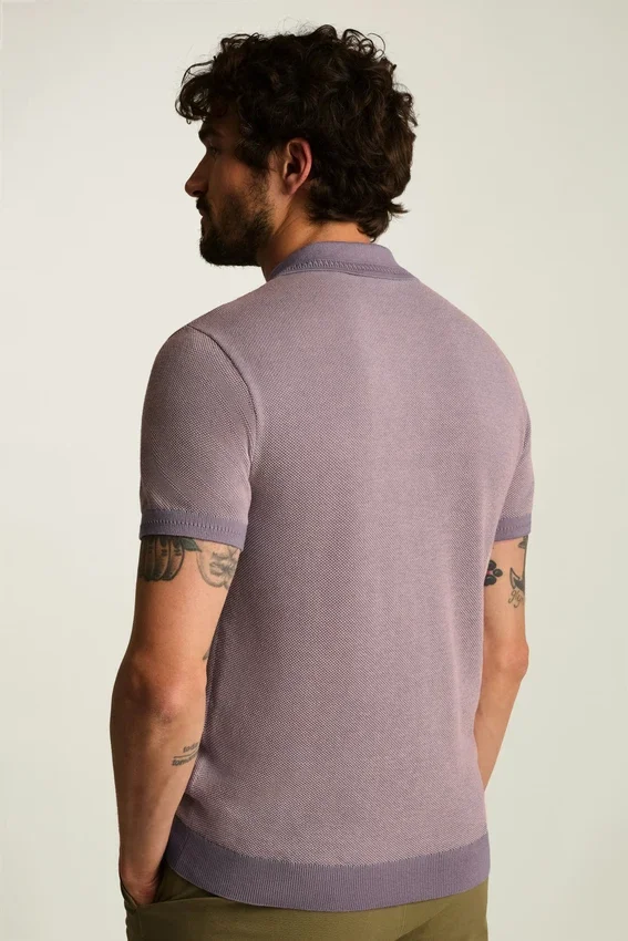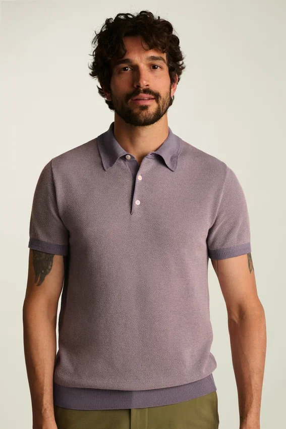 Un polo en maille au style rétro, best-seller de la marque, confectionné avec des fils de saison et des motifs originaux, prêt à s’imposer dans votre garde-robe.