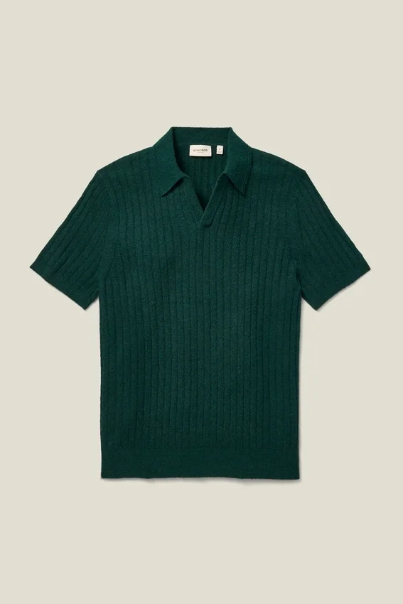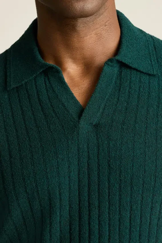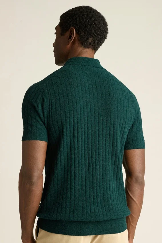 Un polo en maille au style rétro, best-seller de la marque, confectionné avec des fils de saison et des motifs originaux, prêt à s’imposer dans votre garde-robe.