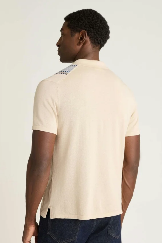 Un polo en maille au style rétro, best-seller de la marque, confectionné avec des fils de saison et des motifs originaux, prêt à s’imposer dans votre garde-robe.
